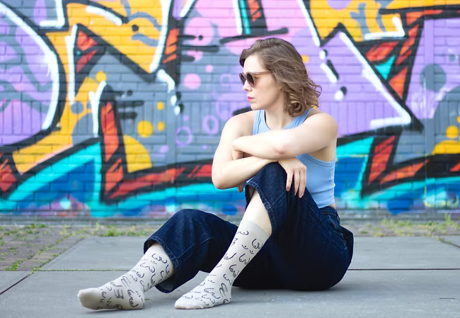 Titties socks! Available in two sizes: 37-41 and 42-46. The socks are made with 90% cotton, 8% polyamide, 2% elastane and are super soft! The packaging is made with recycled cardboard.